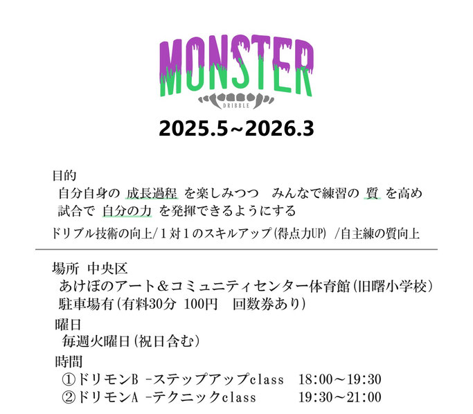 ドリブルモンスタークラス(数名追加募集)